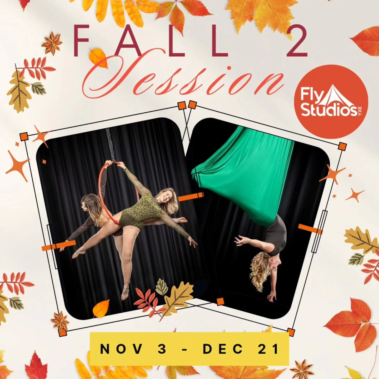 Every studio has different policies when it comes to studio attire. Please take look at the required attire for your next class at Fly Studios YXE. We ask that you abide by our policy so that you can participate in our classes. By following these simple requests we can keep you and our fabric safe. Zippers, jewelry and sharp nails tear holes in our fabric and you may get hurt or damage the fabric such that it has to be replaced.