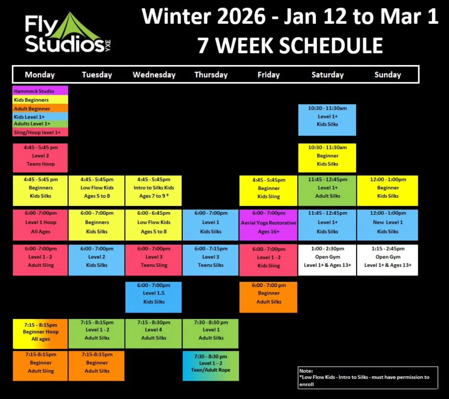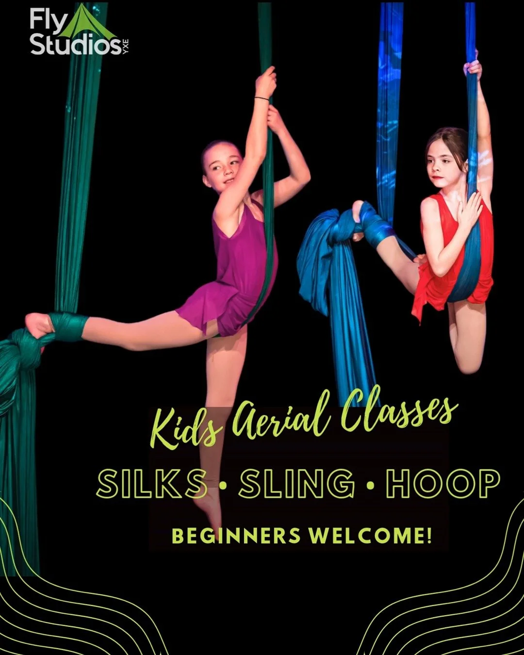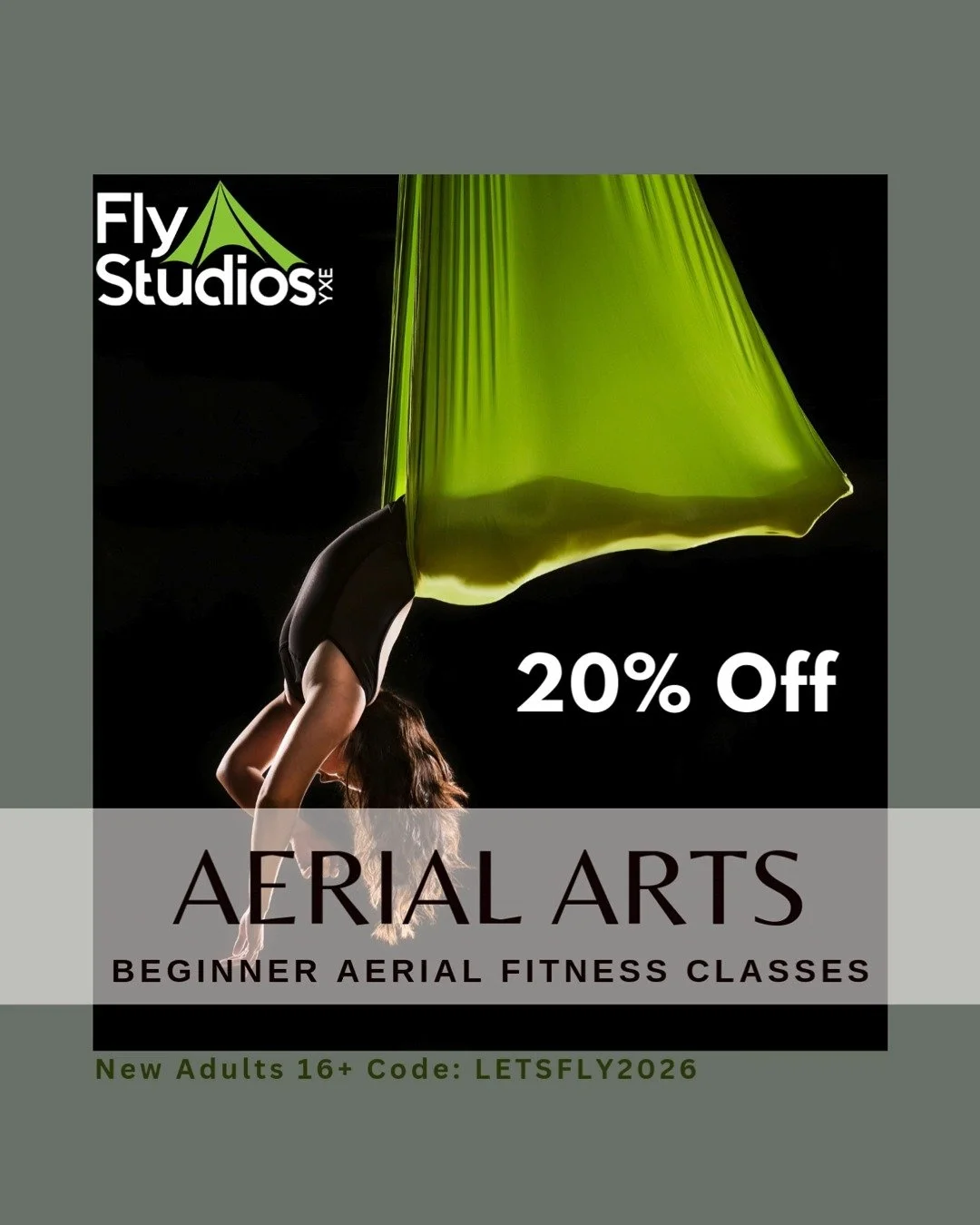 Beginner Aerial Silks class is designed to guide all fitness levels safely through the basics of climbing, foot locks and beginner poses all while safely within inches off the ground.